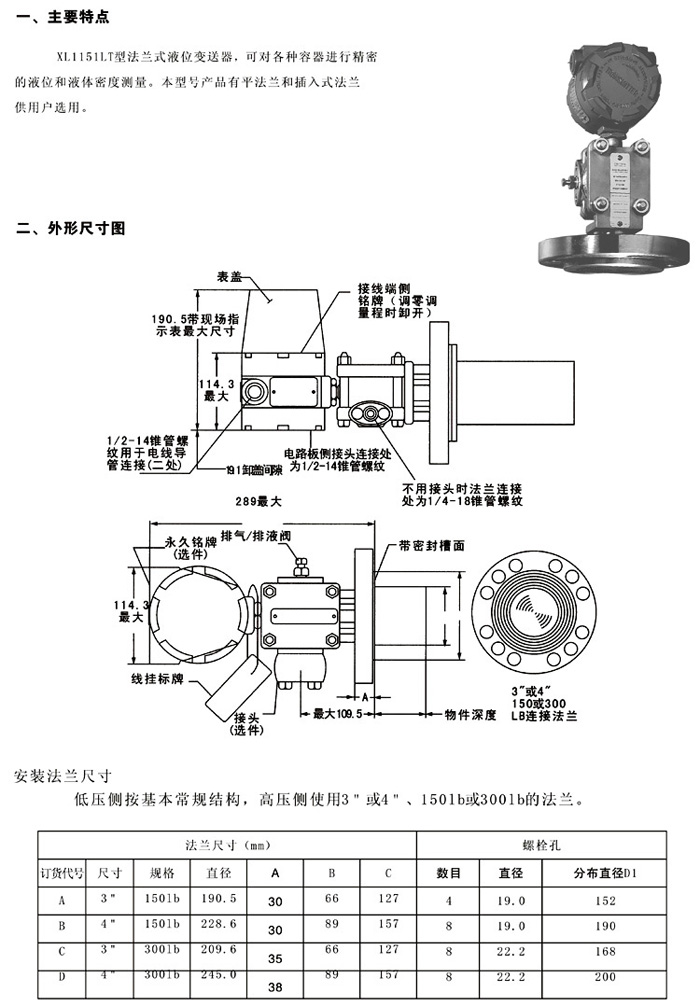 XL1151LT单平法兰/液位变送器