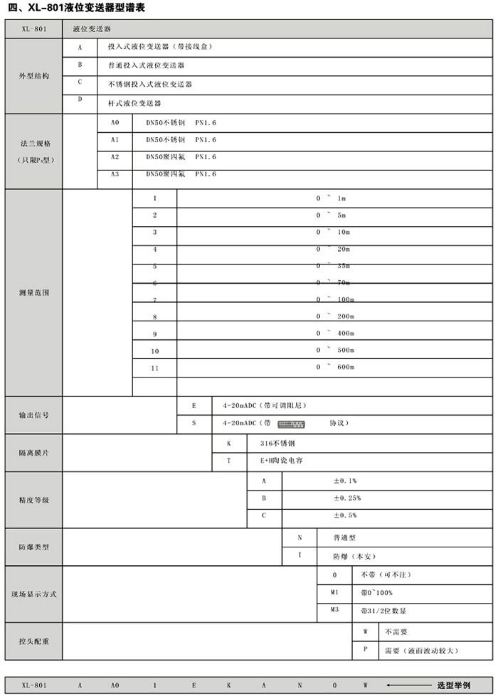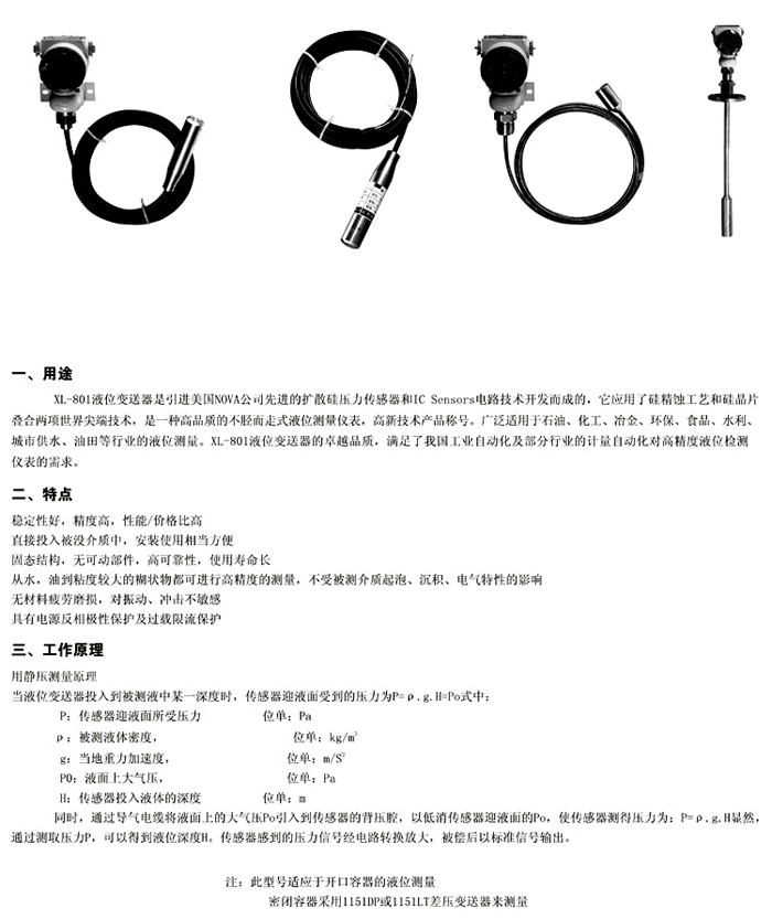XL-801B普通投入式液位变送器
