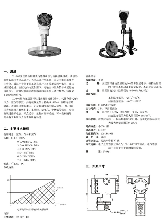 XL3051LW单晶硅单法兰液位变送器