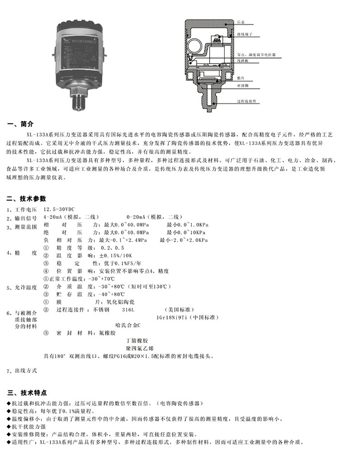XL-133A陶瓷电容压力变送器