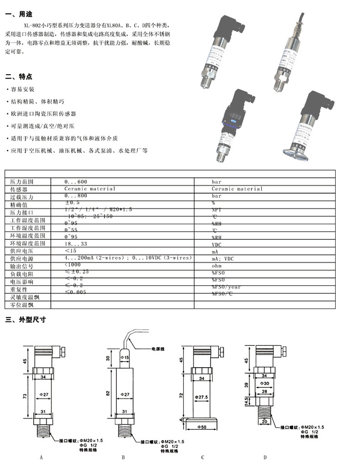 XL-802B小巧型压阻式压力变送器
