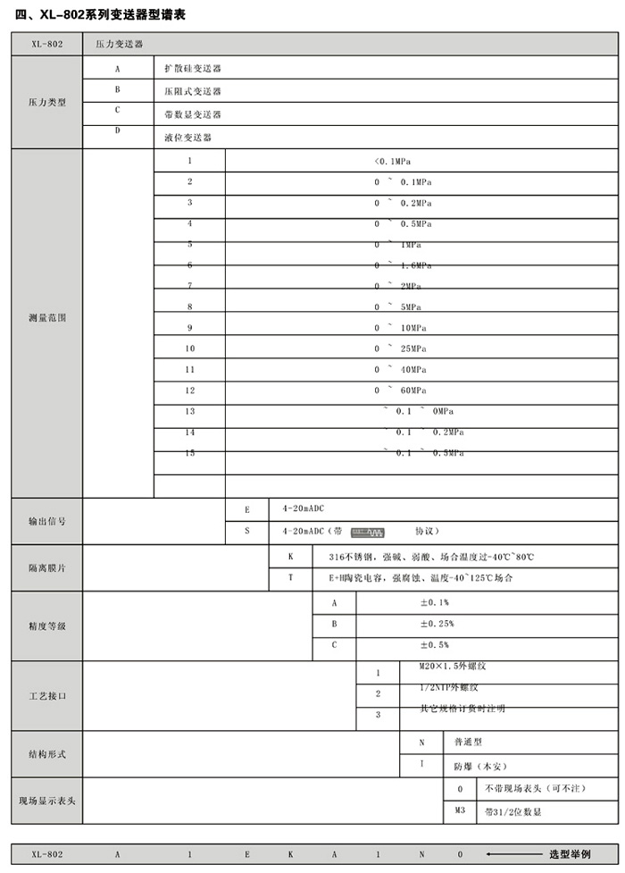 XL800压力变送器