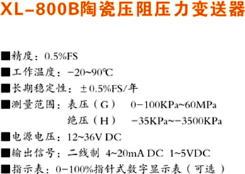 XL-800B陶瓷压阻压力变送器