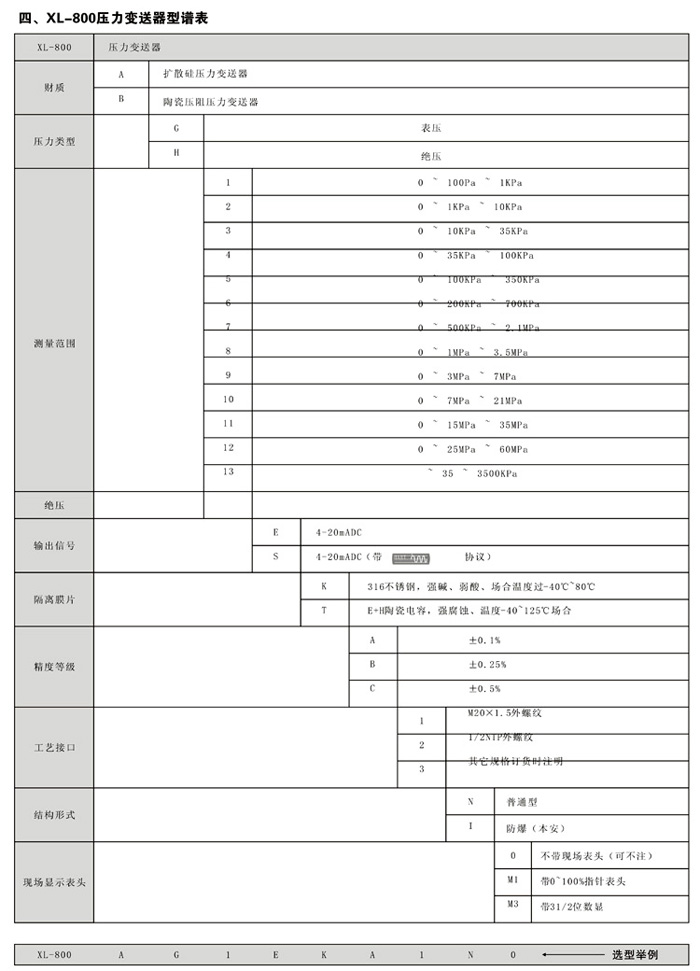 XL800压力变送器